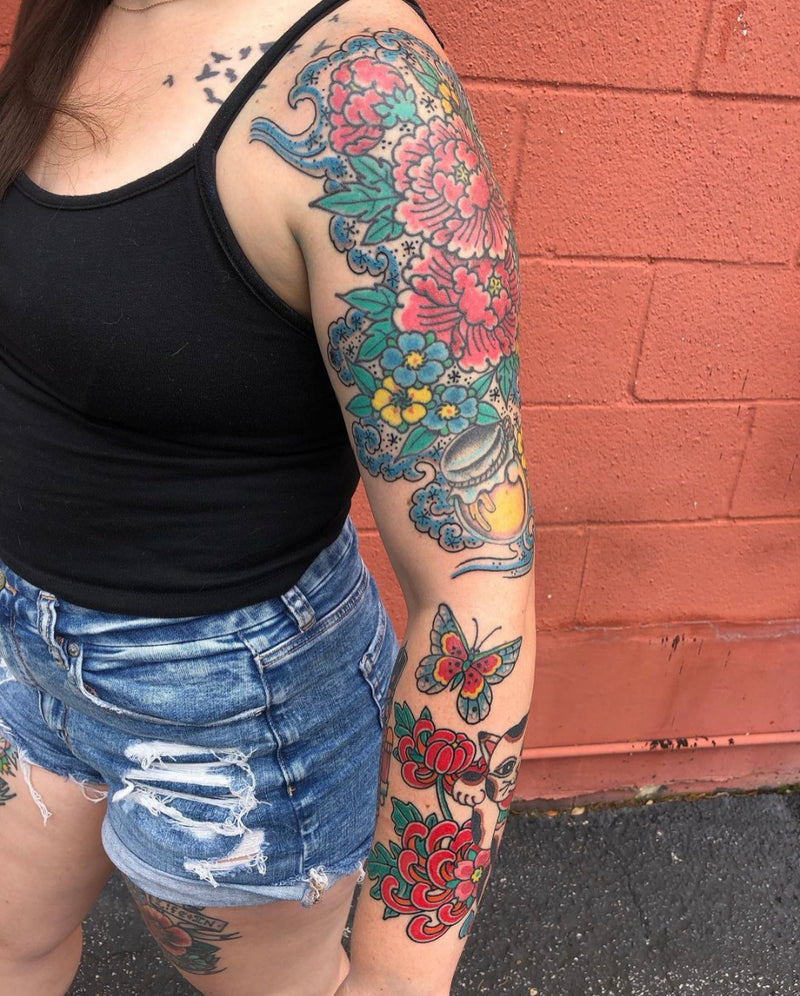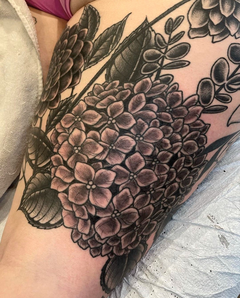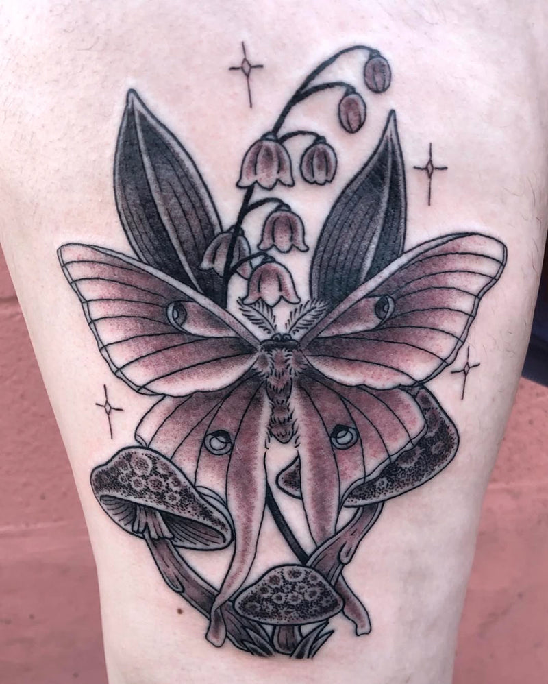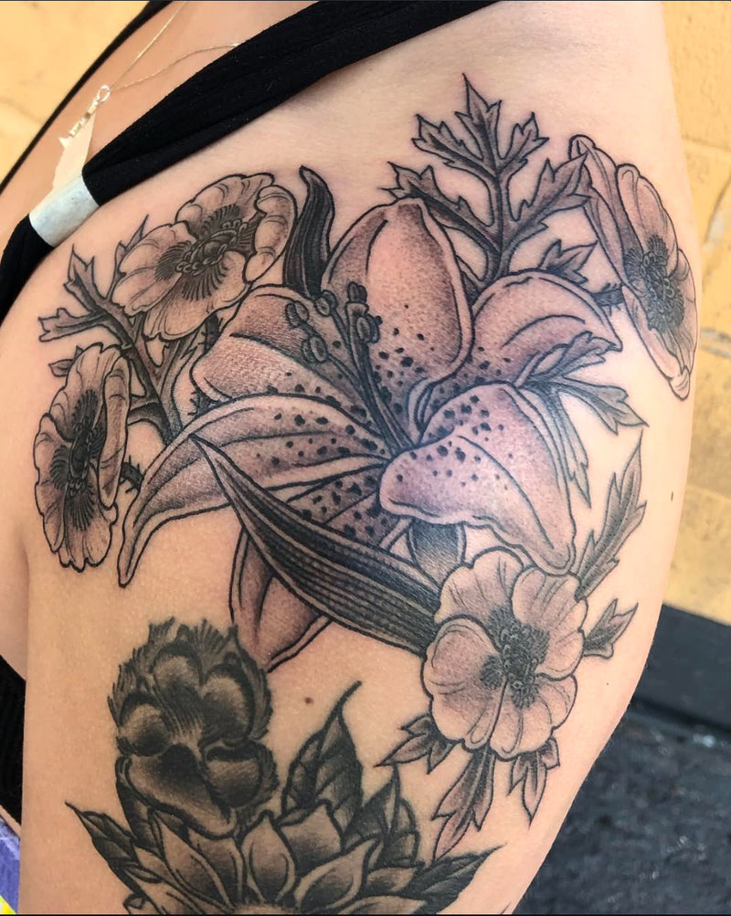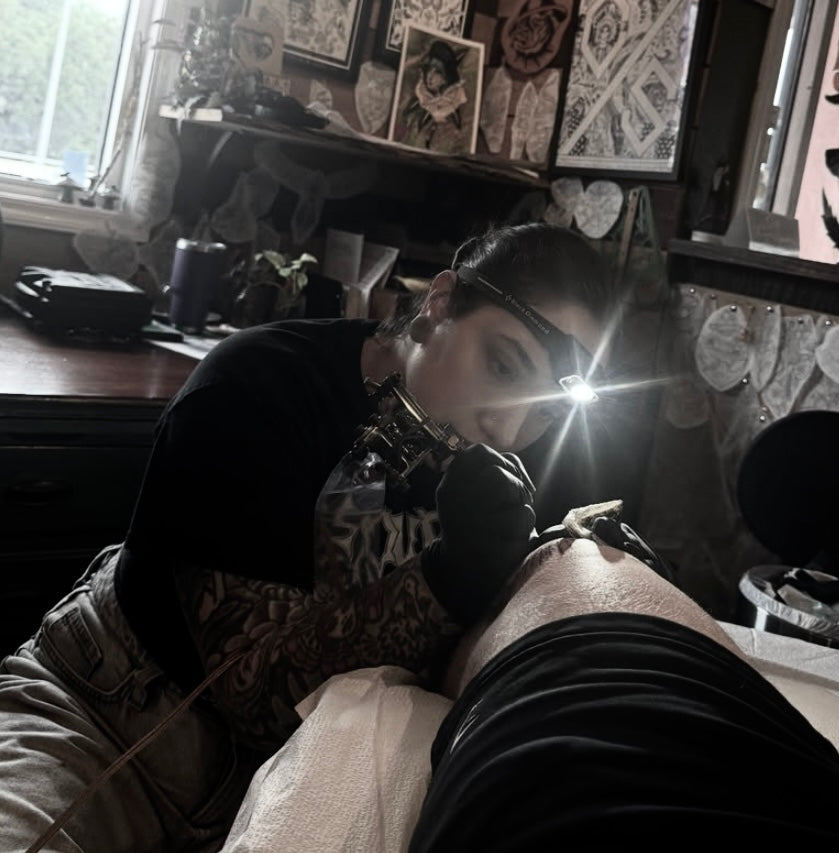 Juliana grew up attending punk shows and knew from a young age she was destined for tattooing. With a lifelong passion for drawing and a keen interest in body modification, tattooing was a natural career path for her. She started her apprenticeship in 2011 in a predominantly American Traditional shop and has since expanded her interests into Blackwork, Fine Line, Illustrative, and Japanese Traditional.
